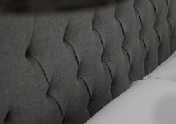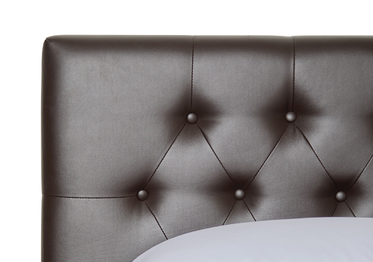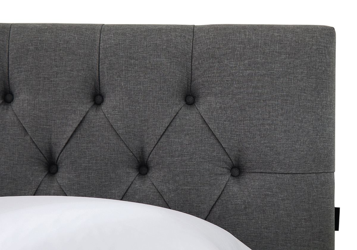 The headboard of the Chandon platform bed features a button-tufted design with classic stitching which adds luxurious charm and distinct character to your bedroom decor. This bed frame employs an upholstered technique, featuring HD foam padding beneath either woven fabric or PU leather options, providing a soft touch and versatility to perfectly match your unique bedroom style.