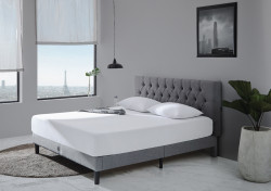 The Chandon platform bed from The Castle Collection by LOTUS Mattress inspires your bedroom with masterfully blending classic and modern elements into a seamless design. Its sturdy internal structure is fortified with high-quality steel for durability, paired with a natural pine wood frame treated to repel insects and prevent wood damage.