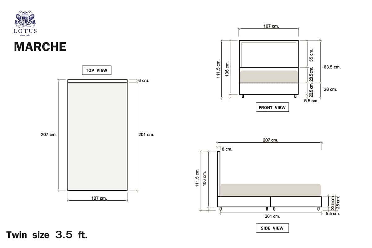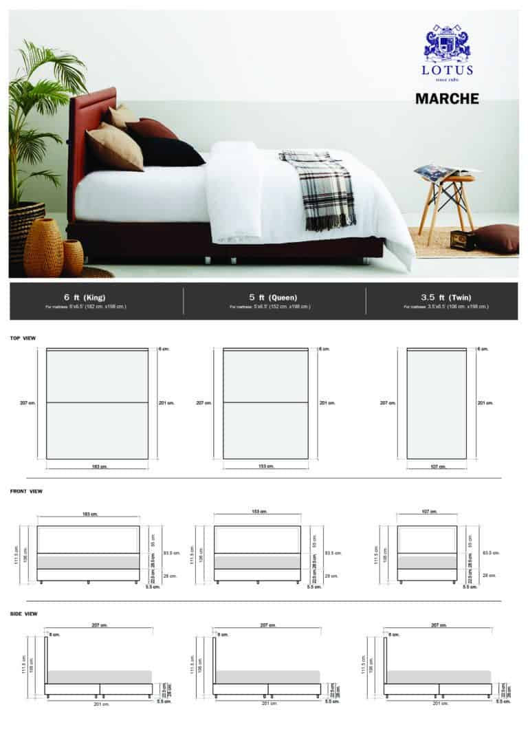 New Bed frame model Marche from Lotus. Highlighted with Blending timeliness of classical theme with trendy lifestyle of the modern day. Available with 3 sizes 3.5 ft., 5 ft., 6 ft. Sleep safe with LOTUS MATTRESS.