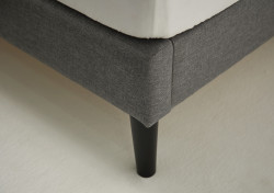 • The bed base is designed to be elevated off the bedroom floor with natural pine wood legs, enhancing air circulation space.