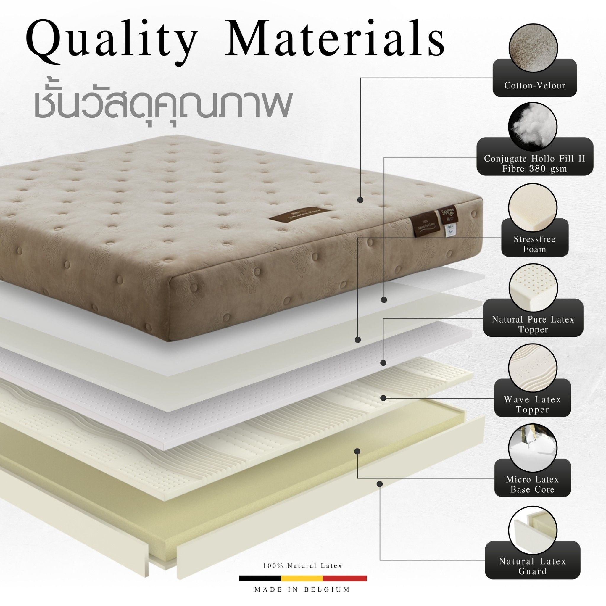 Boosted with a layer of genuine 100% natural latex, its opened-cell structure facilitates superior air circulation. Advanced techniques are employed to undergo a 7-step purification process, targeting residual proteins, a primary source for dust mites and bacteria accumulation.