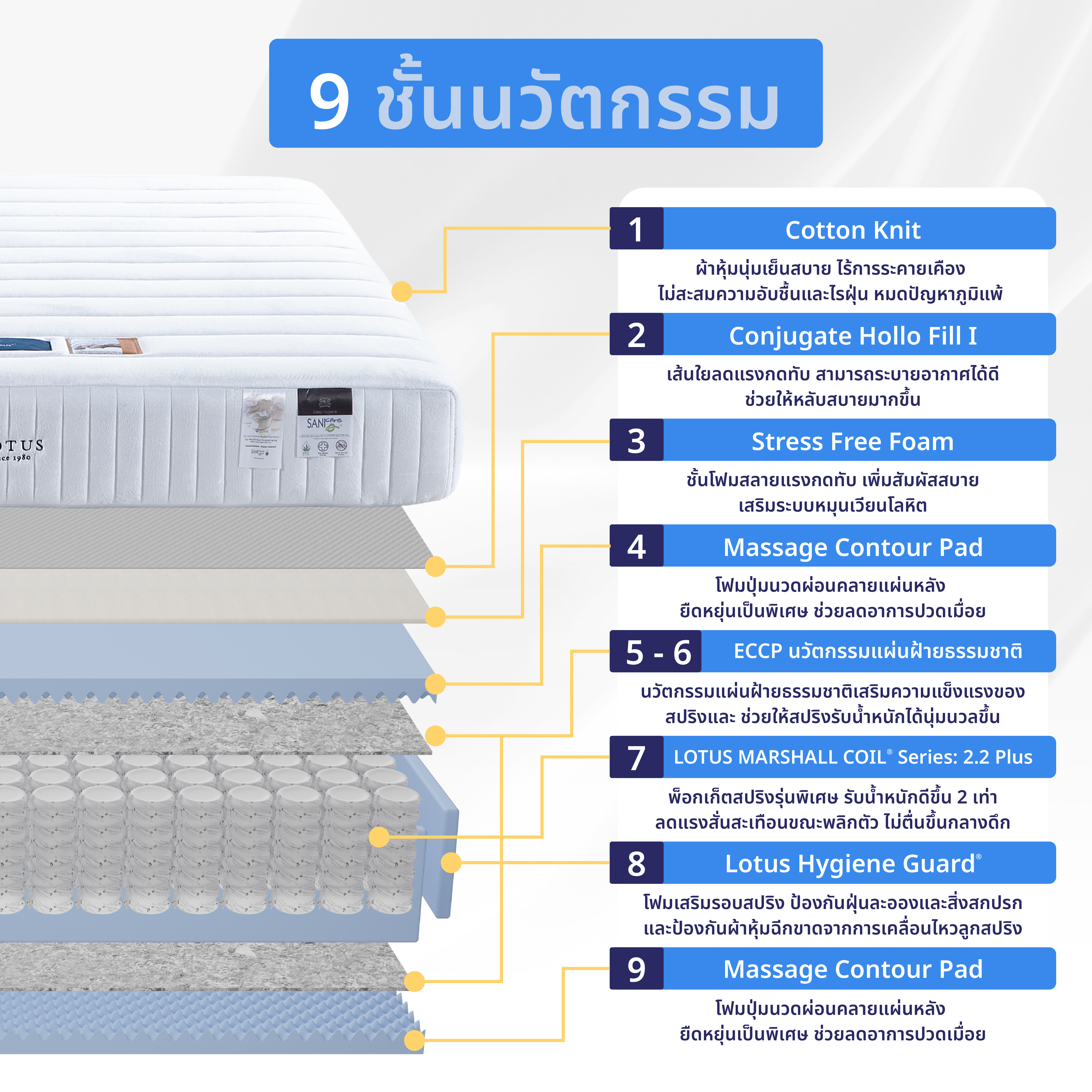 At Lotus Mattress, we offer only the best products, service and consumer experience. Our mattress, bedlinen ,and bedding accessories form together not only a total bedding solution and perfect sleep environment that love you, but also a touch of superior blend of comfort and luxury, the answer to the pursuit of quality well-being and healthy lifestyles.