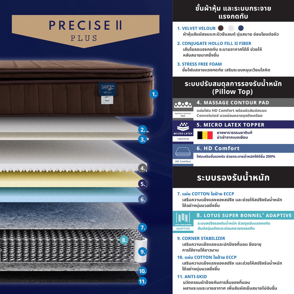Enjoy a special feeling of relaxation and quality rest with the LOTUS Precise II Plus, which features the Superbonnel Adaptive spring system, designed to perfectly balance support based on your weight and body shape.
