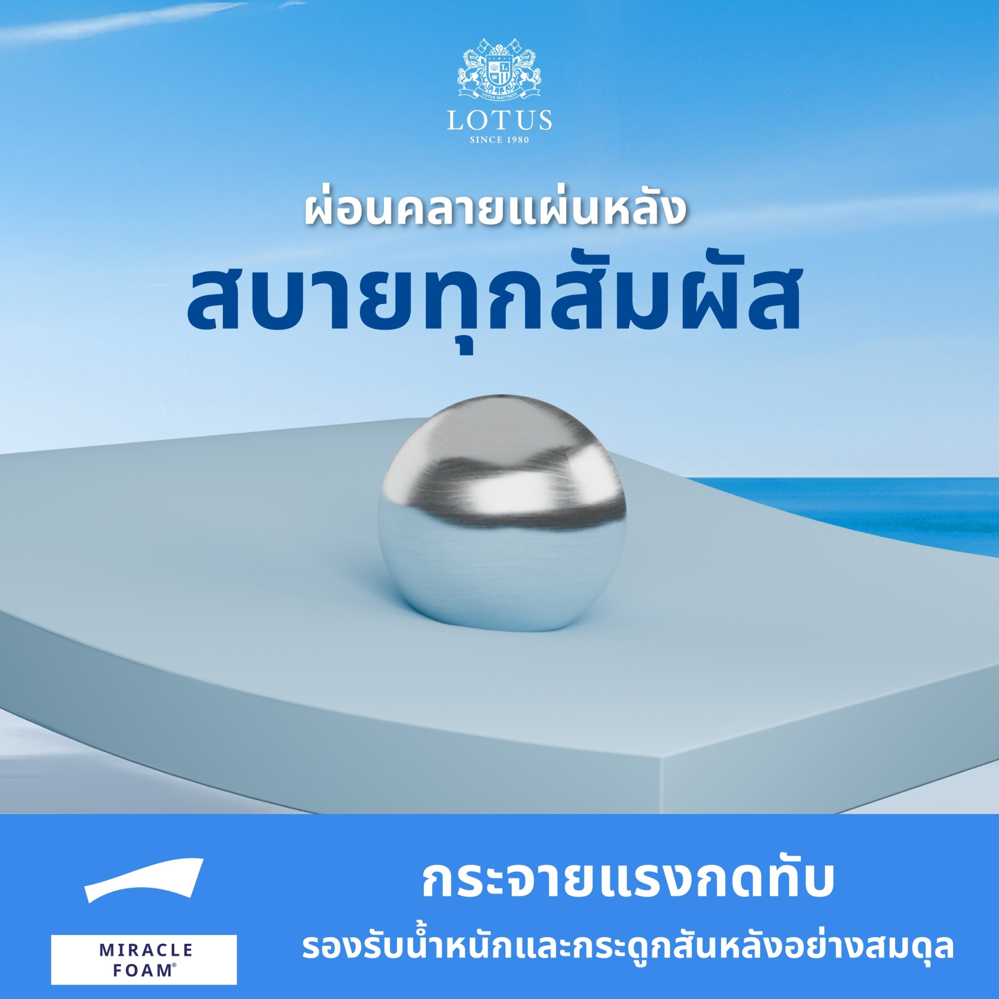ใหม่ ที่นอนโฟมยางพารา รุ่น Ascott จาก LOTUS มาพร้อมความพิเศษ ฐานรองรับน้ำหนัก Miracle Foam® 5 นิ้ว (12.5 เซนติเมตร) โฟมวิทยาศาสตร์อัดแน่นพิเศษพร้อมค่าแรงดันสะท้อนที่สูง (high push-back support)