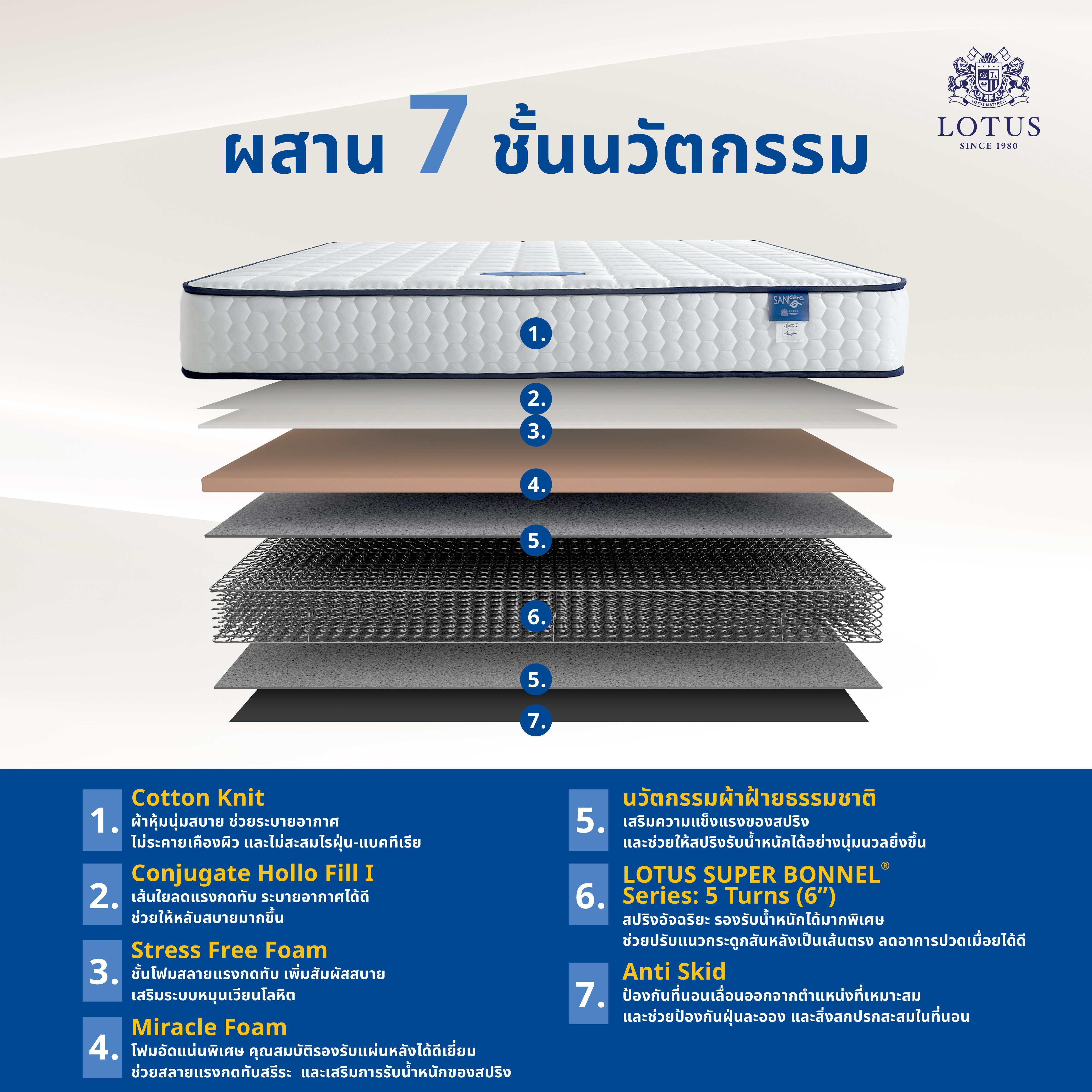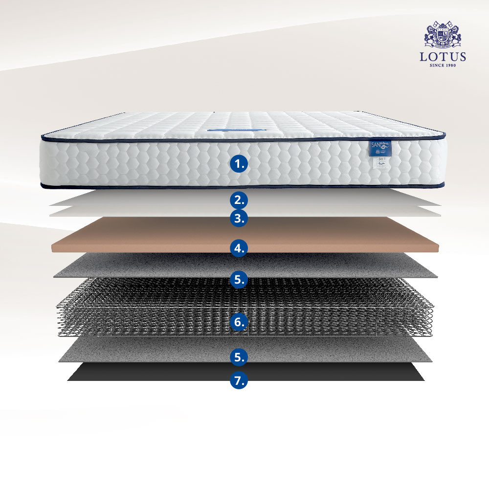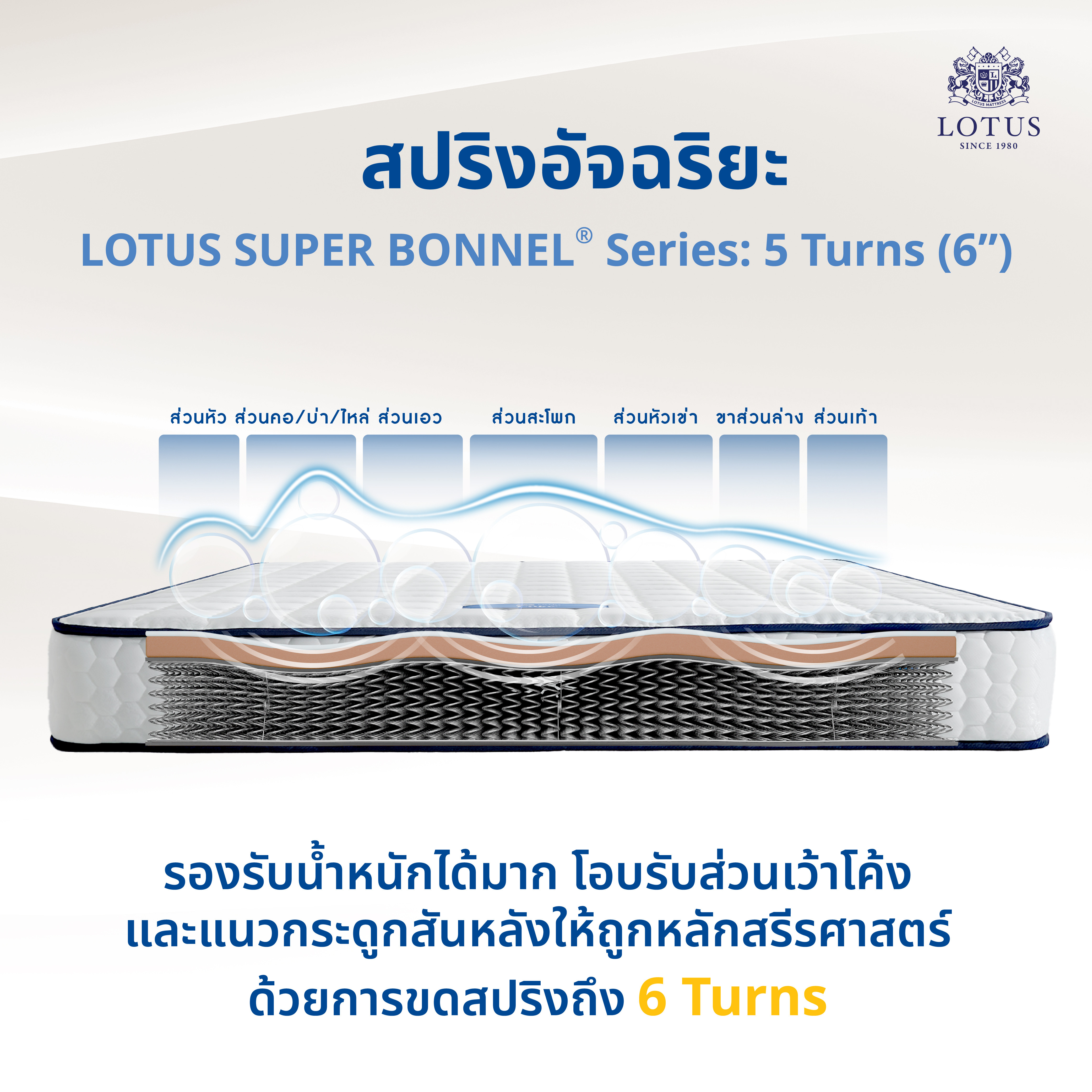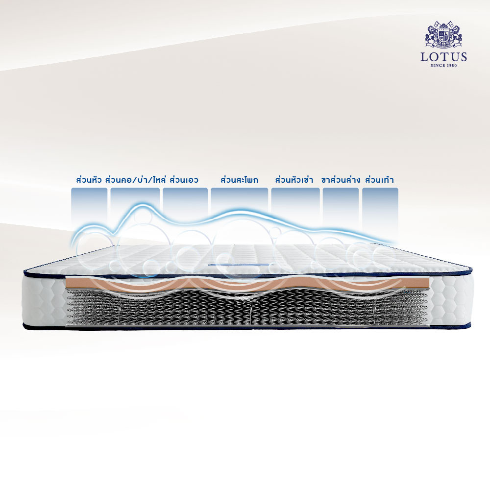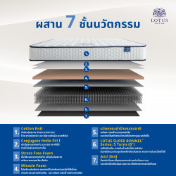 ที่นอน รุ่น LUKE จาก LOTUS Mattress มอบสัมผัสแน่นสบายด้วยระบบสปริงอัจฉริยะ LOTUS Super Bonnel® Series: 5 Turns (6 นิ้ว) ที่มีความแน่นพิเศษ เหมาะสำหรับการรองรับน้ำหนักที่มากและยังสามารถลดแรงกดทับได้อย่างลงตัว มาพร้อมกับสัมผัสยืดหยุ่นและนุ่มนวลสบายของ HD Comfort Foam ที่ออกแบบมาเพื่อโอบอุ้มสรีระทุดสัดส่วน ทำให้นอนแล้วรู้สึกผ่อนคลายและช่วยบรรเทาอาการปวดเมื่อยได้ดีเยี่ยม