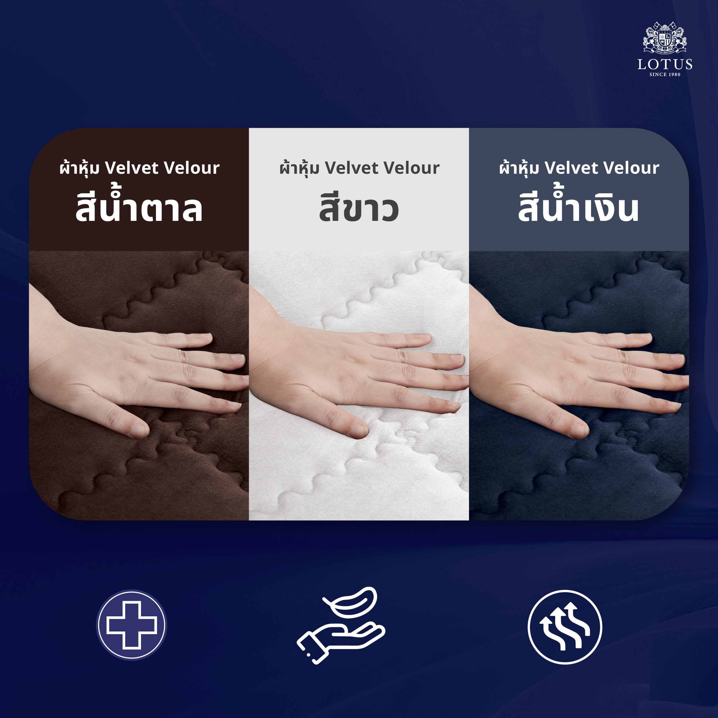 • Velvet-Velour ผ้าหุ้มสัมผัสกํามะหยี่ ผิวสัมผัสนุ่มสบายคล้ายขนแกะ อากาศถ่ายเทได้เป็นอย่างดี ไม่อับชื้น สร้างความสบายในทุกสัมผัส