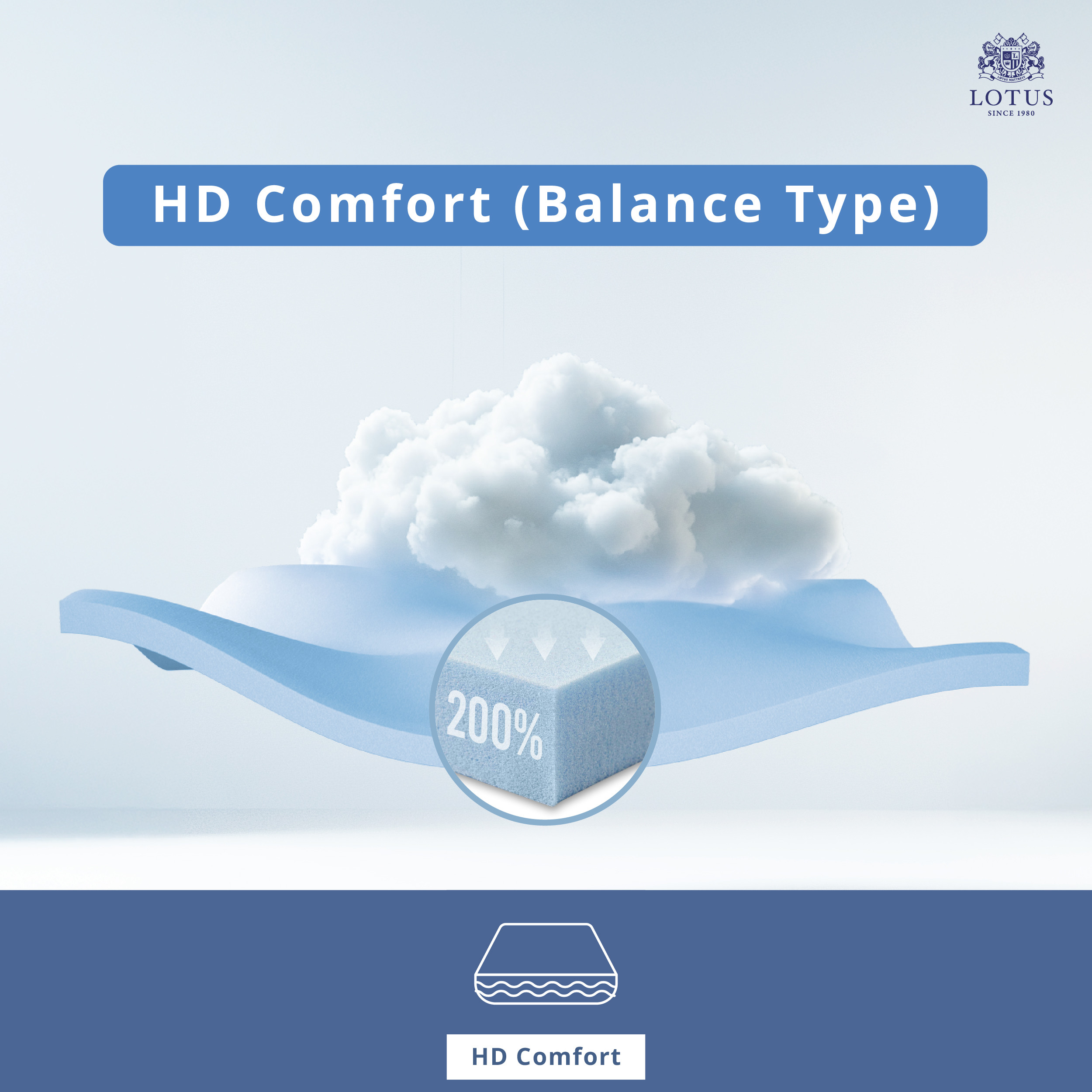 • HD Comfort เนื้อโฟมแบบรวงผึ้ง พร้อมโครงสร้างรูพรุนระบายอากาศแบบเปิด (Opened-Cell) ช่วยสลายแรงกดทับและน้ำหนักของร่างกายให้กระจายไปในทั่วทิศทาง ทำให้ร่างกายรู้สึกผ่อนคลาย อีกทั้งยังปลอดภัยด้วยกรรมวิธีผลิตที่เป็นมิตรต่อสิ่งแวดล้อม