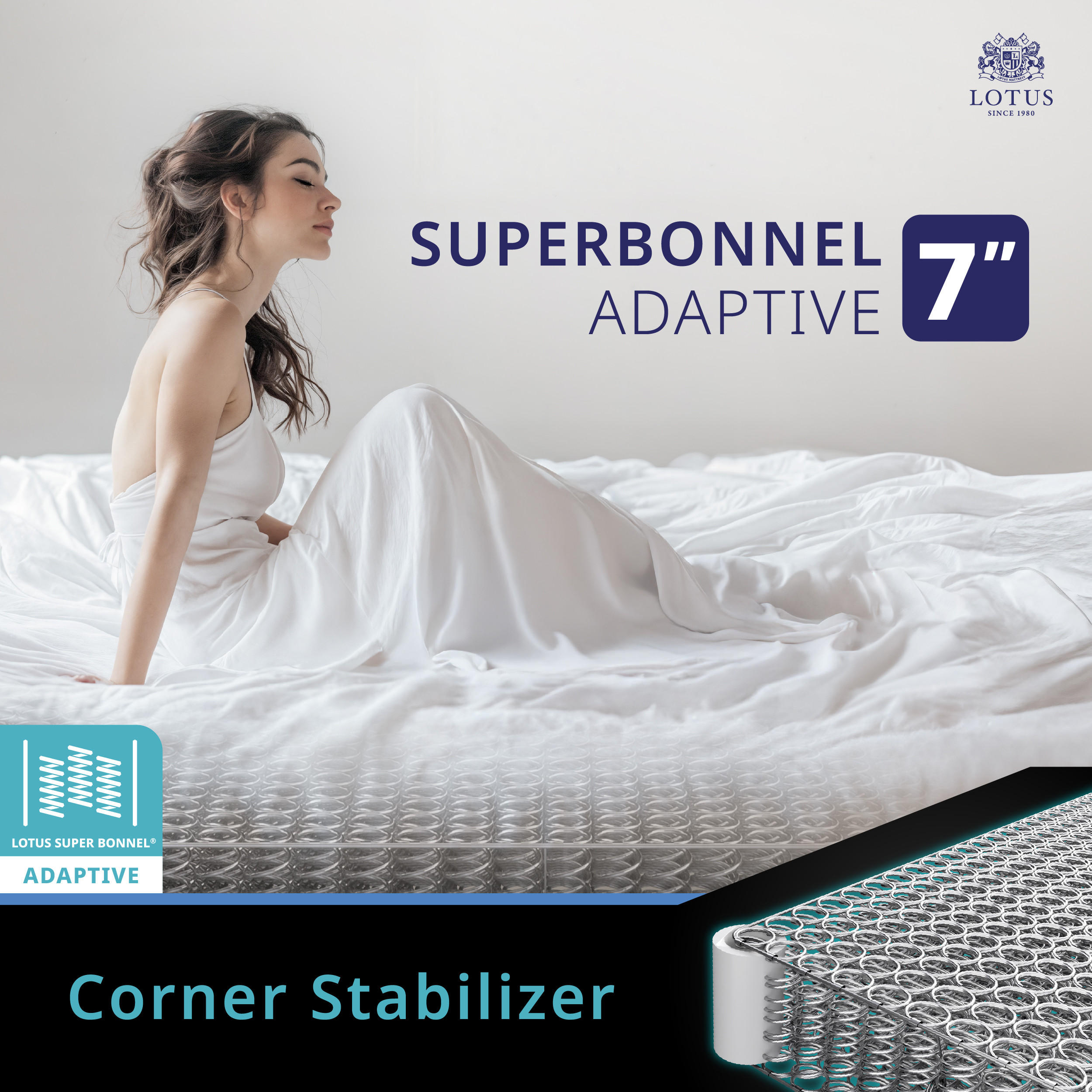 • LOTUS Super Bonnel® Adaptive ระบบสปริงที่ออกแบบมาเพื่อปรับสมดุลการรองรับตามน้ำหนักและสรีระของผู้นอนอย่างเหมาะสม ช่วยดูดซับแรงกดทับได้ทุกสัดส่วนของร่างกาย และจัดแนวกระดูกสันหลังให้อยู่ในตำแหน่งที่ถูกต้อง มอบสัมผัสการนอนที่นุ่มเด้งและผ่อนคลายตลอดคืน