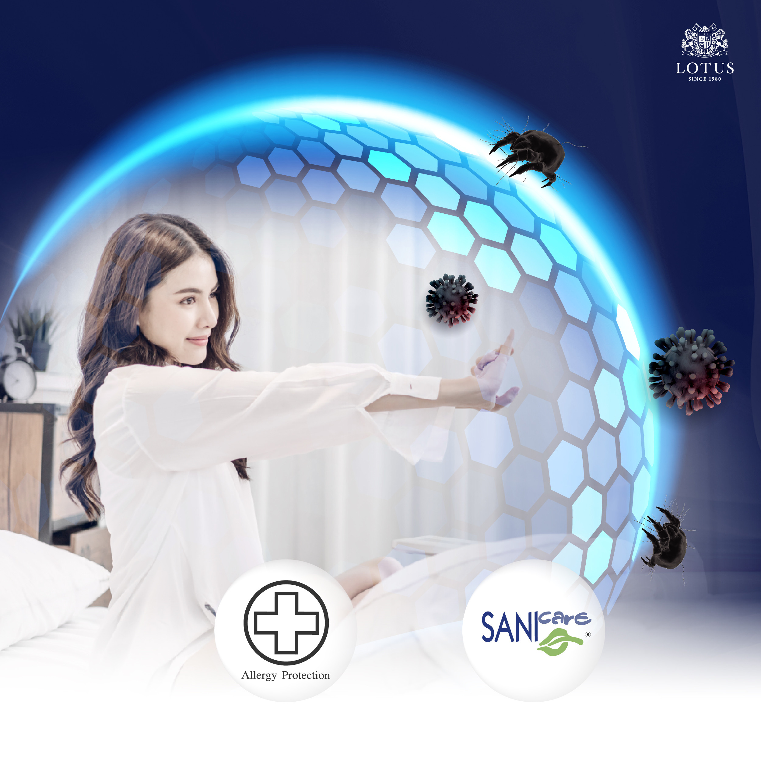 • Sanicare® สารสกัดจากพืชผักธรรมชาติ ป้องกันฝุ่นละออง และสารสกปรก ยับยั้งการเจริญเติบโตของไรฝุ่นอย่างถาวร
