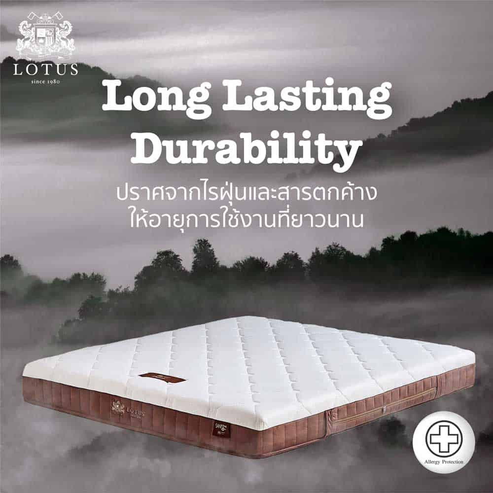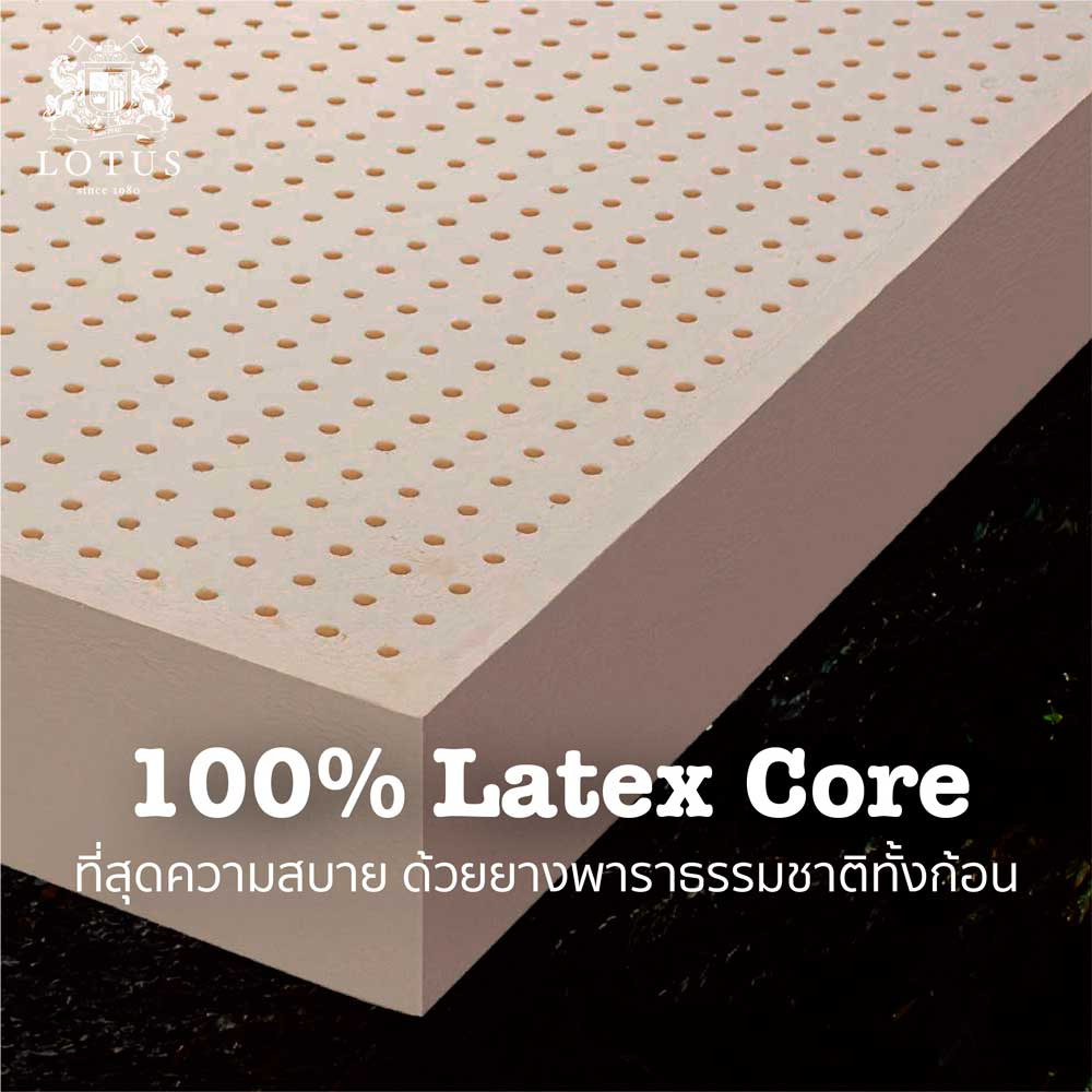 ที่นอนระดับ World Class เพียงไม่กี่รุ่นในโลกที่ผลิตจากยางพาราธรรมชาติบริสุทธิ์ 100% ปราศจากสารเคมีปนเปื้อน เป็นลิขสิทธิ์เฉพาะของที่นอน LOTUS ในประเทศไทย พร้อมมอบนิยามใหม่ของการพักผ่อนที่วัสดุยางพาราทั่วไปให้คุณไม่ได้ ให้สัมผัสสมดุลที่นุ่มสบาย กระจายแรงกดทับ ลดแรงสั่นไหวบนที่นอน และช่วยรองรับแนวกระดูกสันหลังอย่างถูกต้องตามหลักสรีรศาสตร์ พร้อมเสริมแผ่น Stressfree โฟม ดูดซับน้ำหนัก ลดแรงกดทับเพื่อช่วยเพิ่มระดับการหมุนเวียนโลหิต