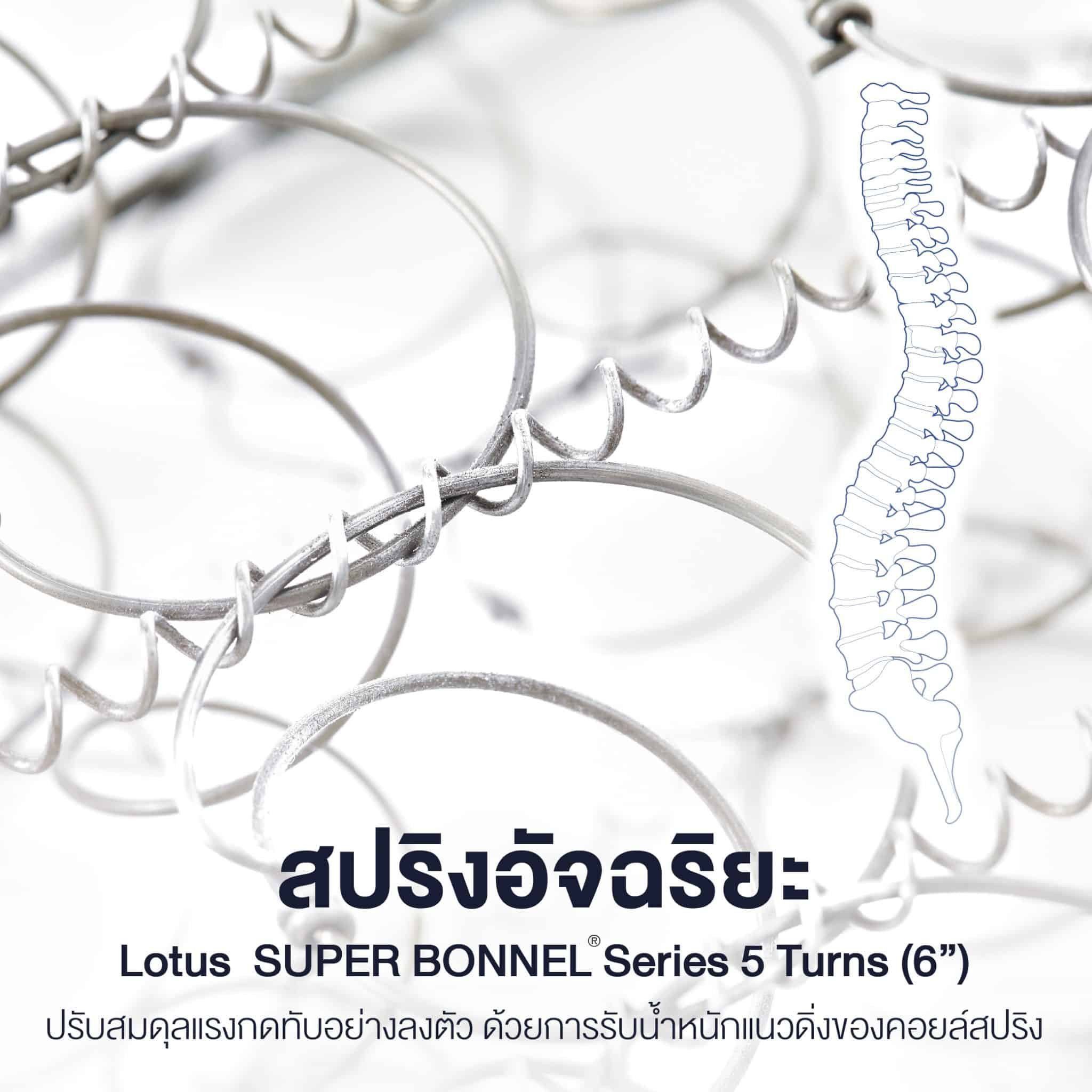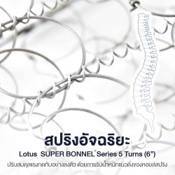 ใหม่ ที่นอนสปริง รุ่น The Lounge จาก LOTUS มาพร้อมความพิเศษ สปริง LOTUS SUPER BONNEL® Series: 5 Turns (6นิ้ว นุ่มแน่น Medium Type) เหมาะสำหรับการรองรับน้ำหนักที่มากและยังปรับสมดุลแรงกดทับอย่างลงตัว