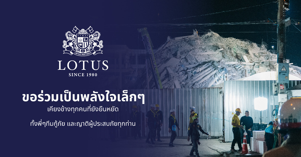 “เราเชื่อว่า ‘การพักผ่อนที่ดี’ คือพลังที่เติมเต็มให้ทุกคนมีแรงเดินหน้าต่อ โดยเฉพาะในสถานการณ์ที่ยากลำบากแบบนี้ พวกเราทุกคนในกลุ่มบริษัทที่นอนโลตัสขอส่งกำลังใจและยืนหยัดเคียงข้างเจ้าหน้าที่กู้ภัยและครอบครัวของผู้ประสบภัยอย่างเต็มที่”