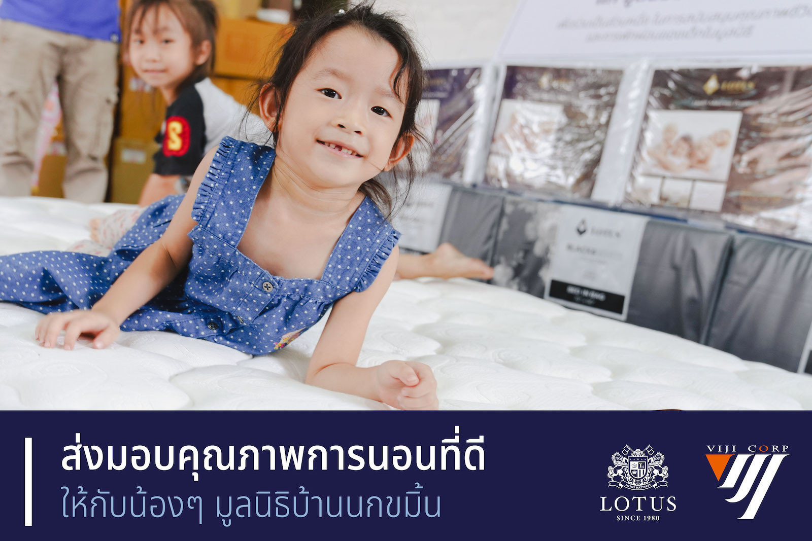 LOTUS Mattress ร่วมกับ VIJI Corp. ผู้สร้างสรรค์งานคอนเสิร์ตระดับนานาชาติในประเทศไทย มอบที่นอนและชุดเครื่องนอนโลตัสจากงานเทศกาลดนตรี PELUPO 2023 เป็นที่นอนจำนวน 55 หลัง พร้อมชุดเครื่องนอน 165 ชุด รวมมูลค่ากว่า 4 ล้านบาท ให้กับมูลนิธิ บ้านนกขมิ้น ผู้ที่คอยช่วยเหลือและสร้างรอยยิ้มให้กับเด็กกำพร้ามาตลอดกว่า 30 ปี เป็นการร่วมสนับสนุนคุณภาพชีวิตของเด็กในมูลนิธิผ่านการ “นอนหลับ” อย่างมีคุณภาพ