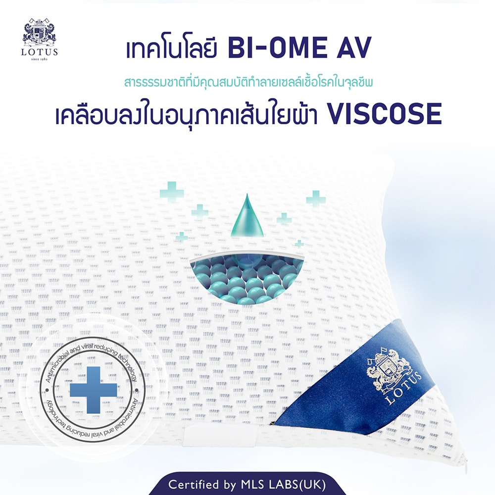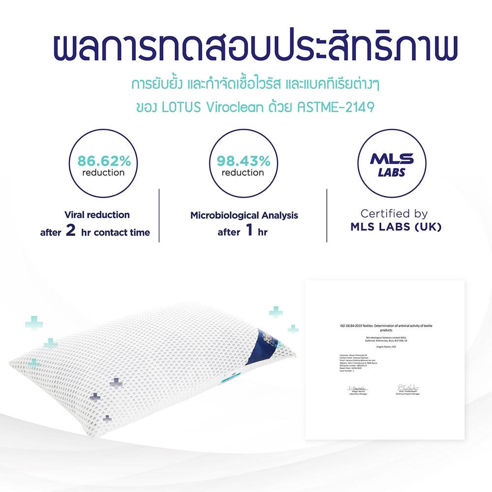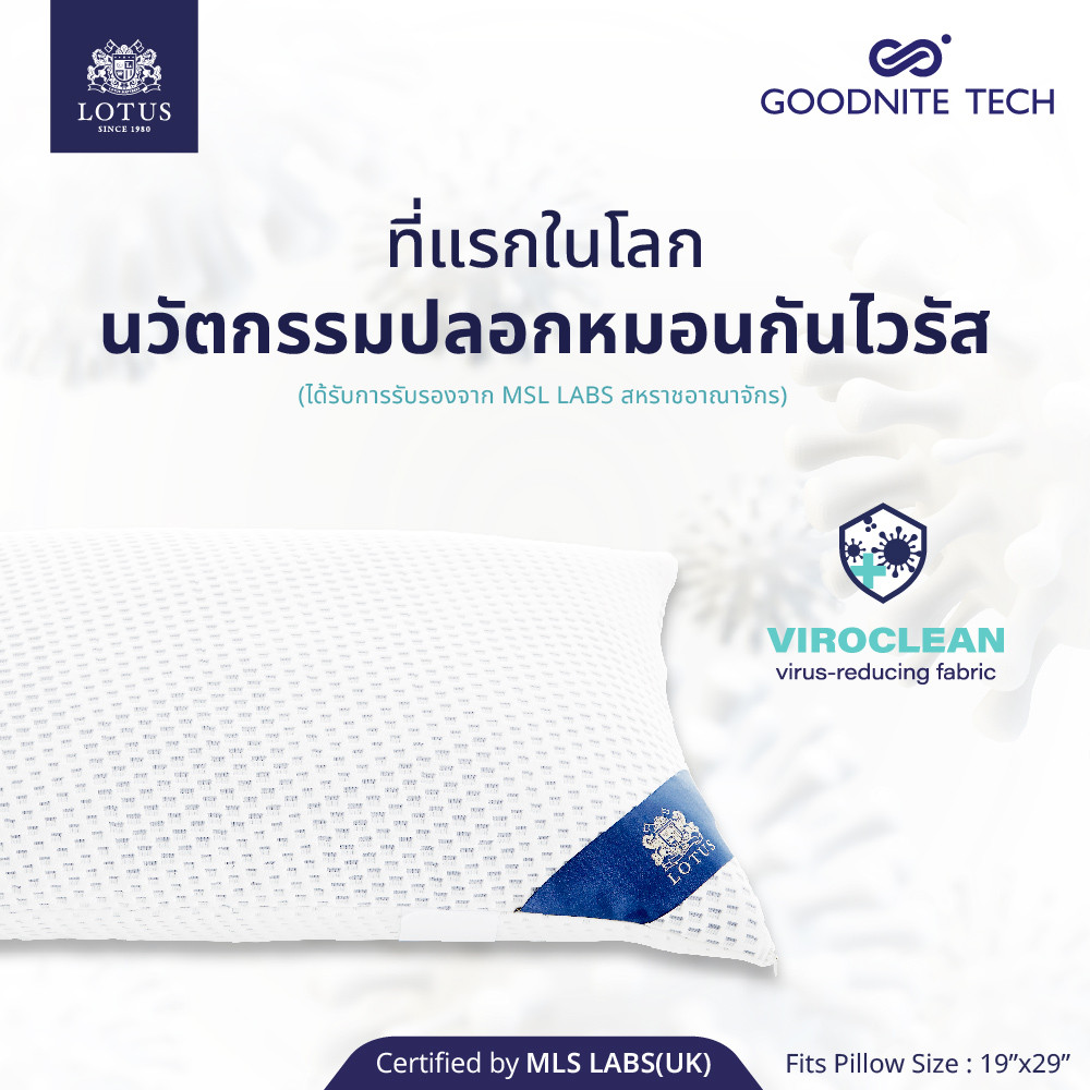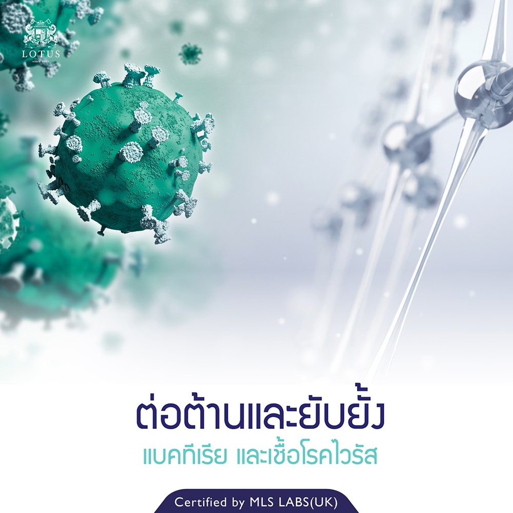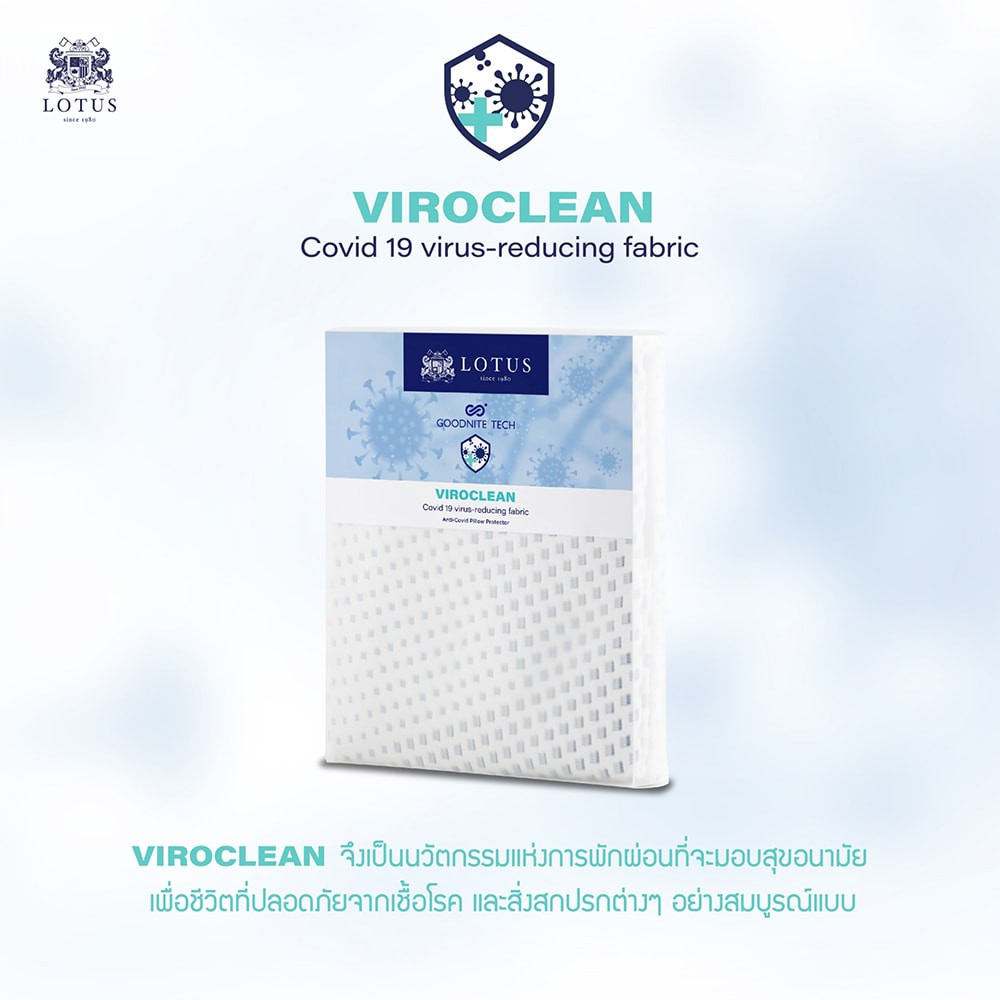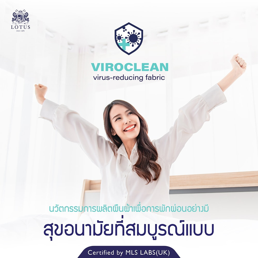 เมื่อสุขอนามัยเป็นปัจจัยสำคัญสิ่งแรกที่ต้องคำนึงถึงในปัจจุบัน ดังนั้นเพื่อหลีกเลี่ยงโรคภัยจากเชื้อแบคทีเรียและไวรัสที่เราไม่สามารถมองเห็นได้ด้วยตาเปล่า Lotus ViroClean คือนวัตกรรมเทคโนโลยีผ้าล้ำสมัยที่ใช้ BI-OME AV สารธรรมชาติซึ่งออกฤทธิ์ดึงดูดจุลชีพเข้ามาแล้วเจาะกลไกเพื่อทำลายเซลล์ของเชื้อโรค เคลือบลงในอนุภาคของเส้นใยที่ใช้ในการทอเป็นผ้า Viscose ทำให้ประสิทธิภาพของผืนผ้าสามารถต่อต้านยับยั้งเชื้อแบคทีเรียและไวรัสได้อย่างคงทนยาวนาน คุ้มครองการพักผ่อนอันสงบในทุกค่ำคืนให้เต็มไปด้วยความปลอดภัย อีกทั้งยังคงไว้ซึ่งผิวสัมผัสที่อ่อนโยนนุ่มนวลไร้การระคายเคือง