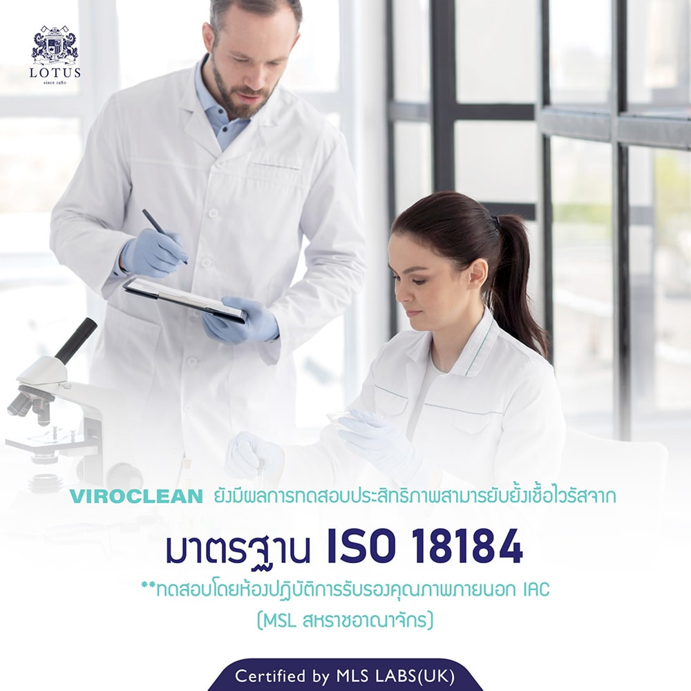นอกจากนี้ผ้าหุ้ม Lotus ®ViroClean ยังมีผลการทดสอบประสิทธิภาพสามารยับยั้งเชื้อไวรัสจากมาตรฐาน ISO 18184
